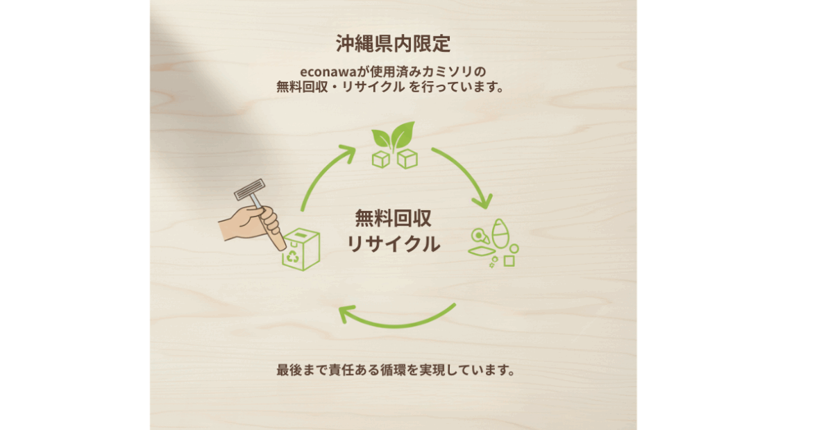 沖縄県内では、econawaが 使用済みカミソリの無料回収・リサイクル を行っています。